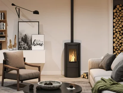 Ronde hydro pelletkachel, ecologisch en efficiënt